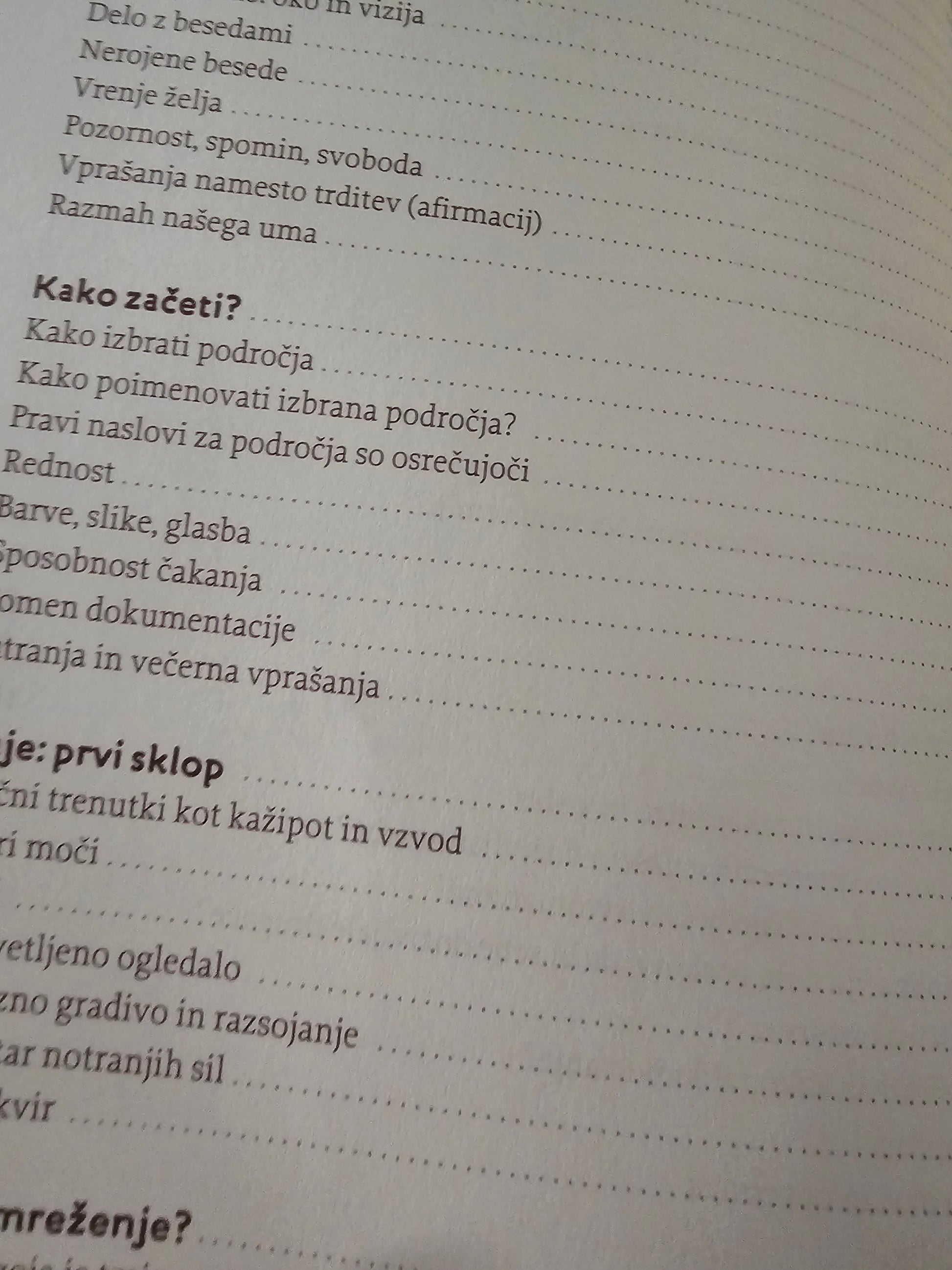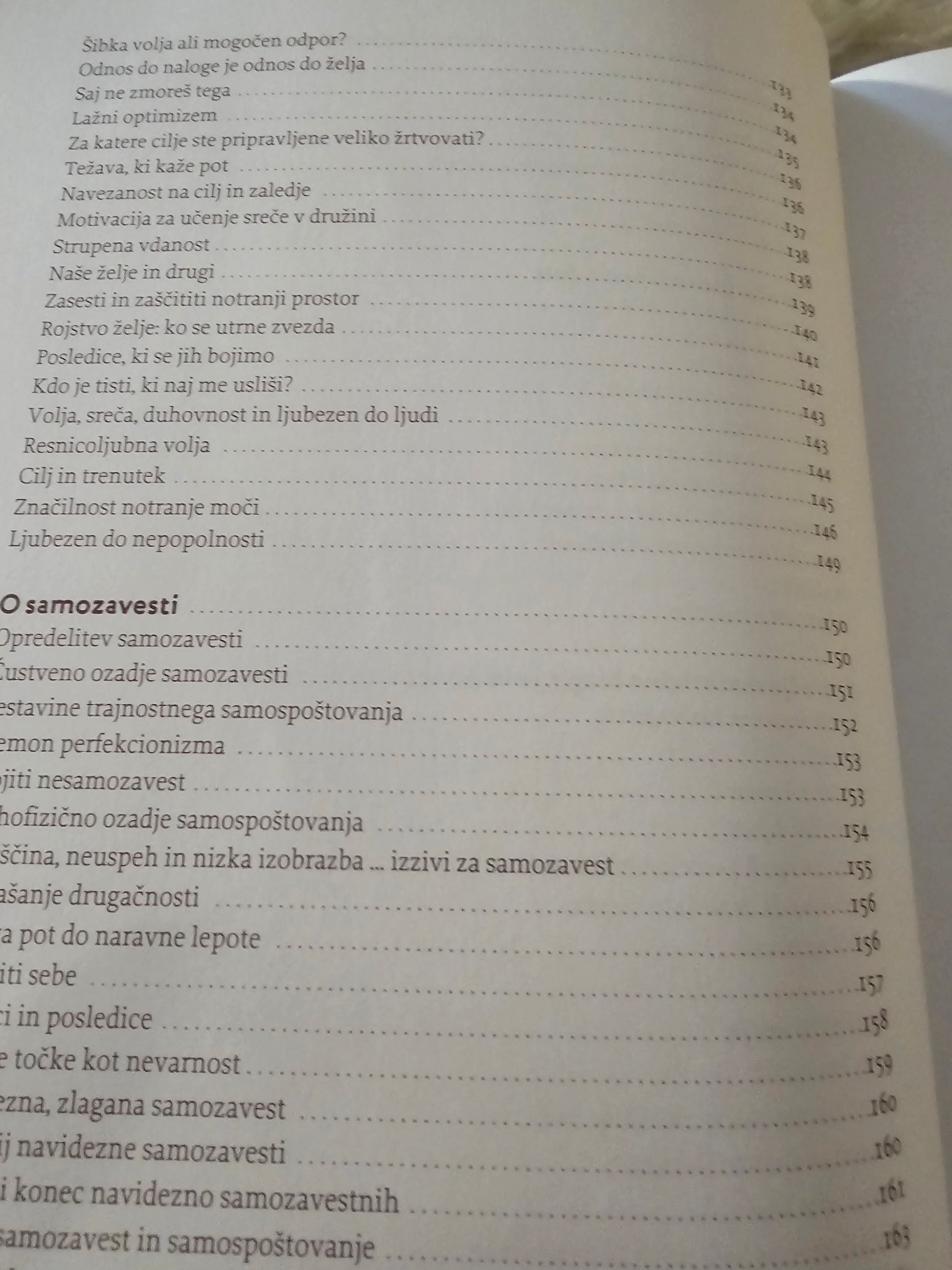 Preučuje vzorce navezanosti, ki so lahko izčrpavajoči, v določenih oblikah tudi zdravilni. Posebna poglavja so namenjena ustvarjalnemu delu, materialni blaginji, pa tudi pomenu samozavesti in samospoštovanja. V drugem delu so štirje sklopi vaj, ki navdihujejo za samovzgojo in dajejo uporabne smernice za naš vsakdan.