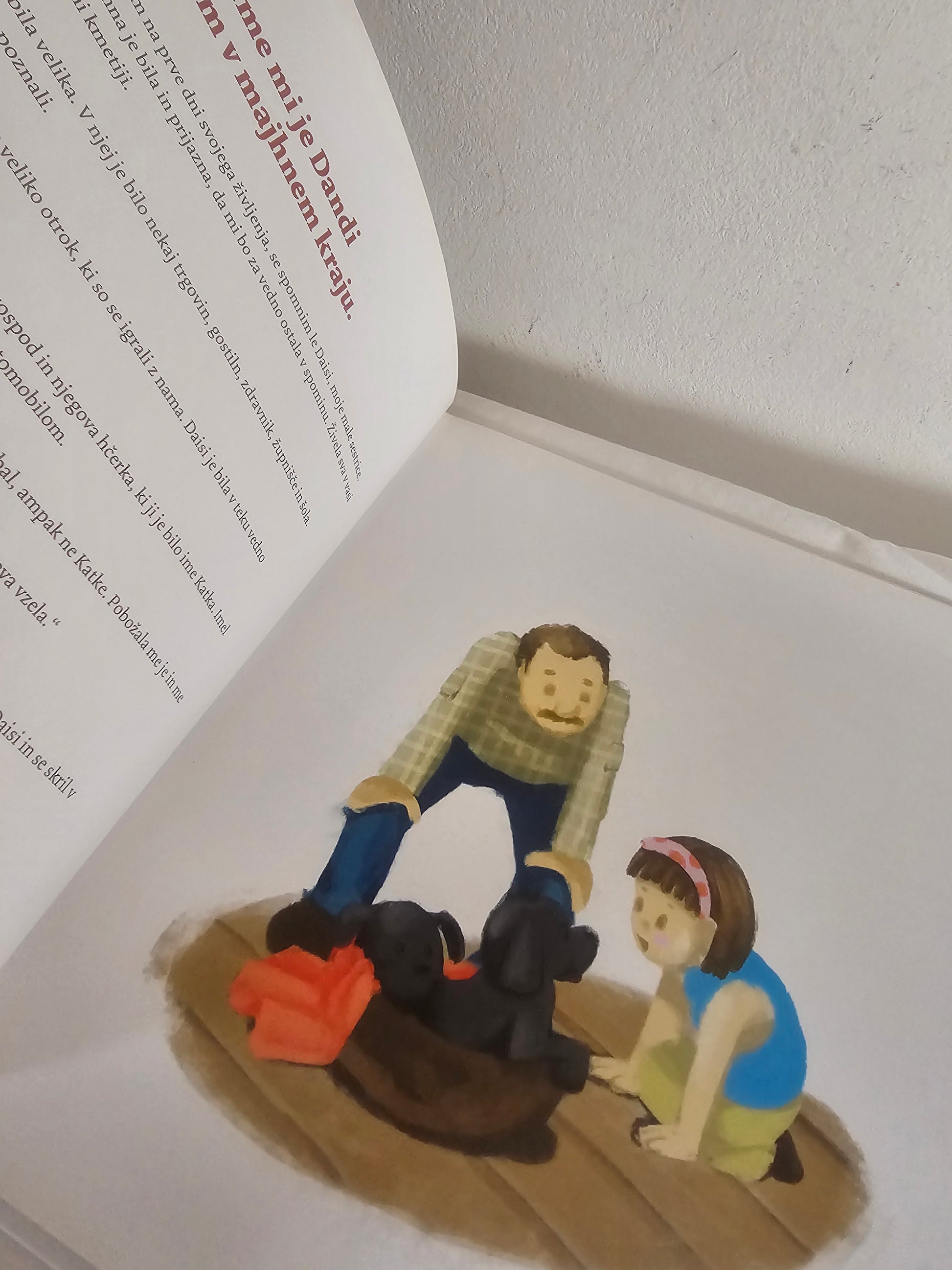 Živio! Ime mi je Dandi in sem mlad psiček, ki živi v majhnem kraju, odkar sem prišel v novo družino, ki me je posvojila. Deklica Katka si me je zelo želela in njena starša sta privolila. Tako sem se poslovil od sestrice Daisi in se takoj skril v naročje Katke. Povem vam, da do danes ne obžalujem. Vsak dan odkrivam nove stvari. Poglejte v knjigo, da se seznanimo in obljubljam, da postanemo prijatelji.