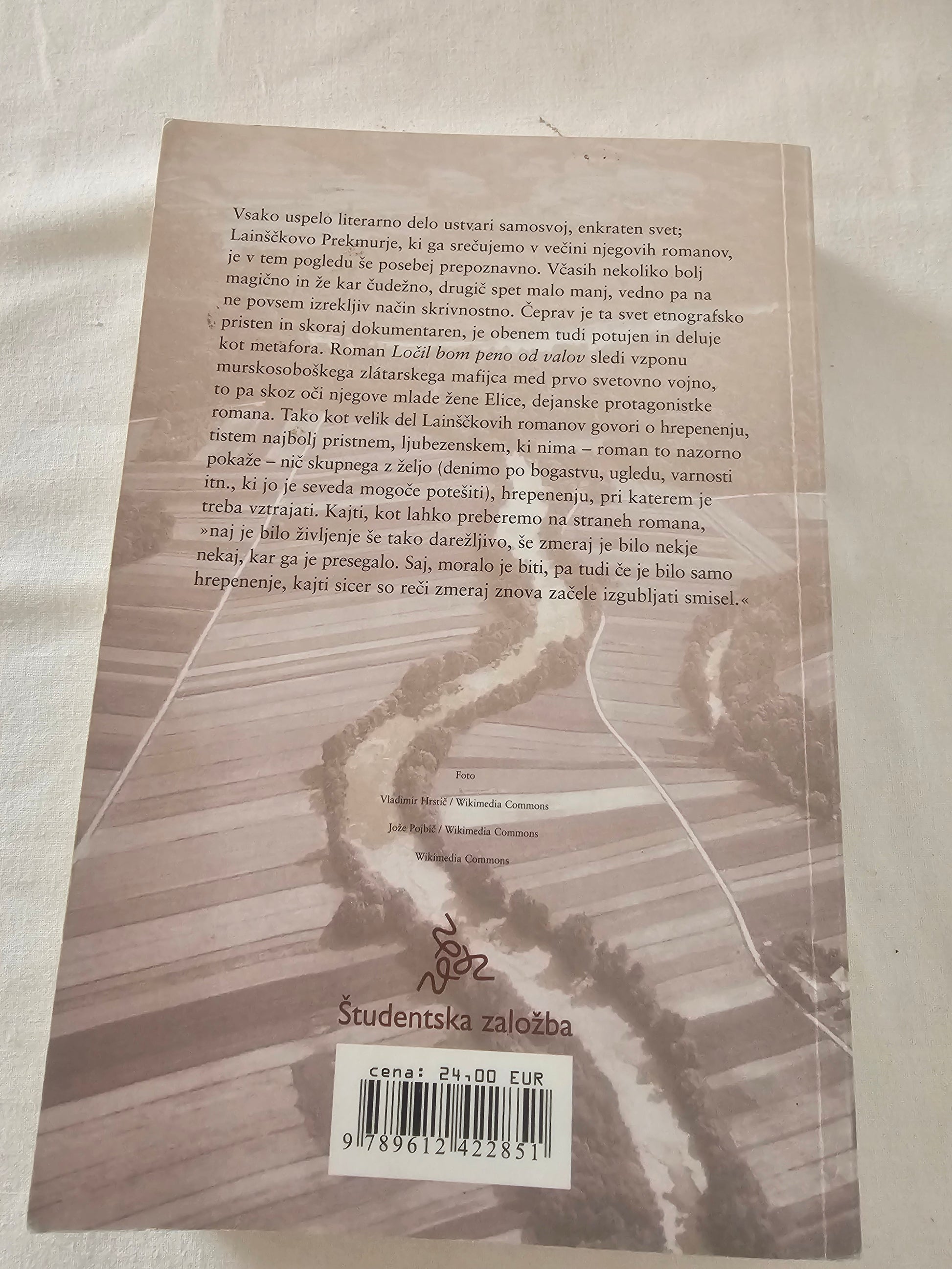 Feri Lainšček je oseba, ki je s srcem in dušo povsem predana omenjeni pokrajini. Dogajanje v tem romanu je postavil v nemirni čas ob koncu prve svetovne vojne. Ločil je materialno in duševno, vdajo in upanje, črno in belo, posameznika, družino, družbo … skratka, peno od valov.