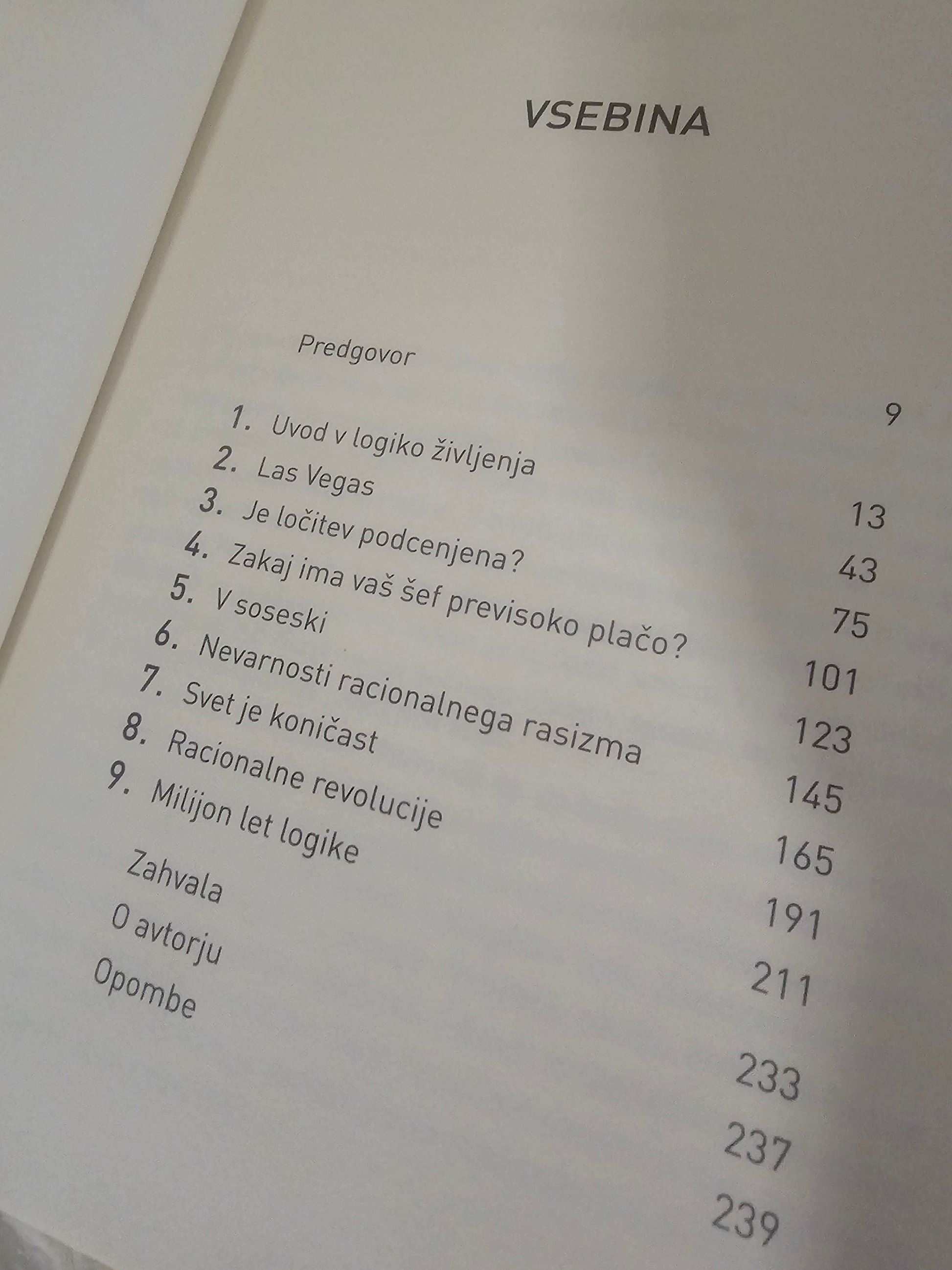 Ekonomist Tim Harford na ta vprašanja ponuja presenetljive odgovore: za najbolj javnimi dogodki, kot so volitve, in za najintimnejšimi, kot so spolni odnosi, s pomočjo teorije racionalne izbire odkriva enake zakonitosti: v ozadju vsega – seksa in zločina, rasizma in pisarniške politike – tiči nova ekonomika, takšen ali drugačen izračun, kaj se (bolj) izplača. »Če so v nekaterih predelih pogosti zločini, se po teoriji racionalne izbire zločin tam izplača: poiskati moramo način, da zločinu zvišamo ceno ali znižamo njegove koristi.