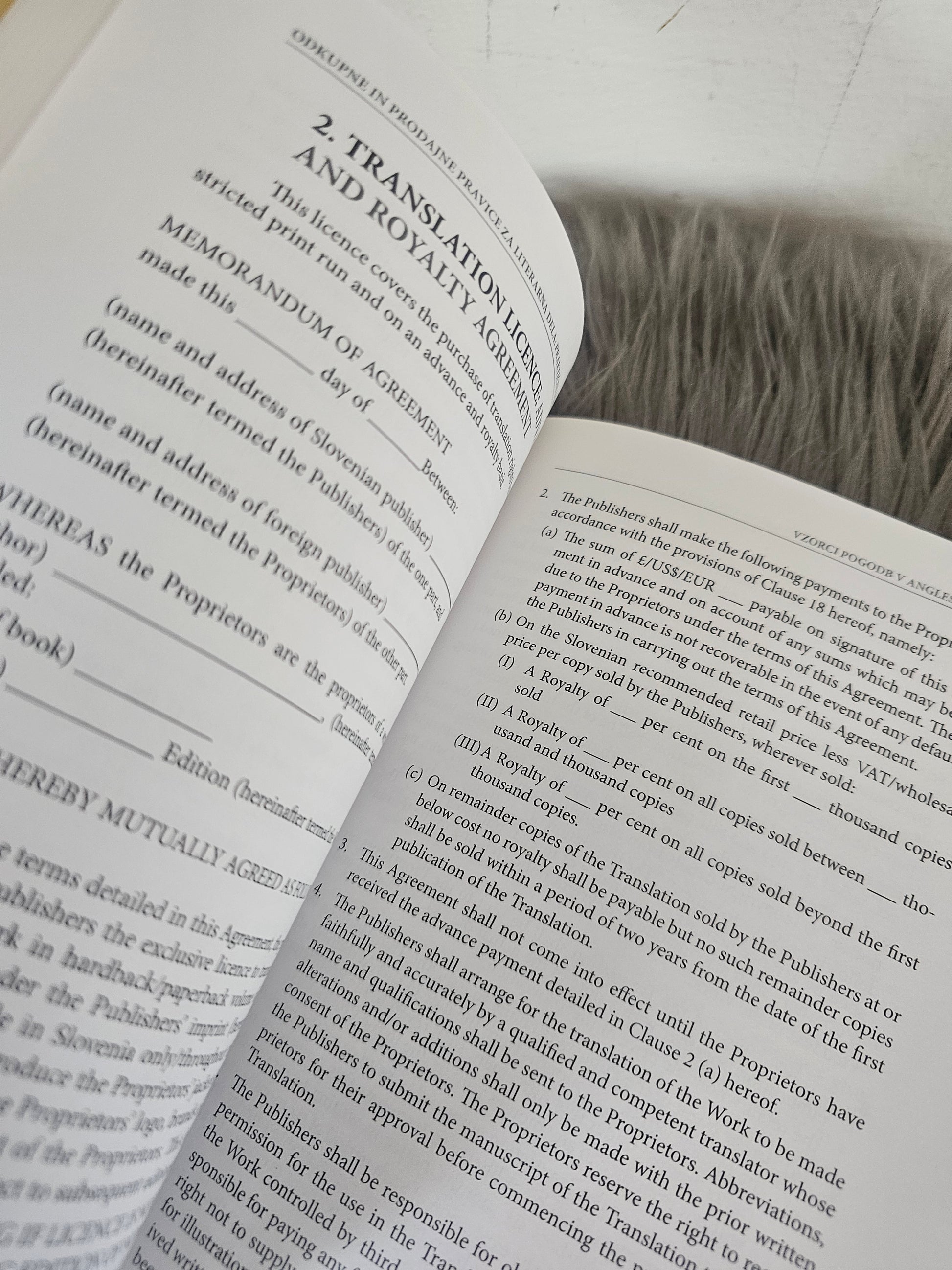 Poleg tega delo vsebuje tudi štiri praktične primere vzorcev pogodb, kot jih uporabljajo zahodni založniki.