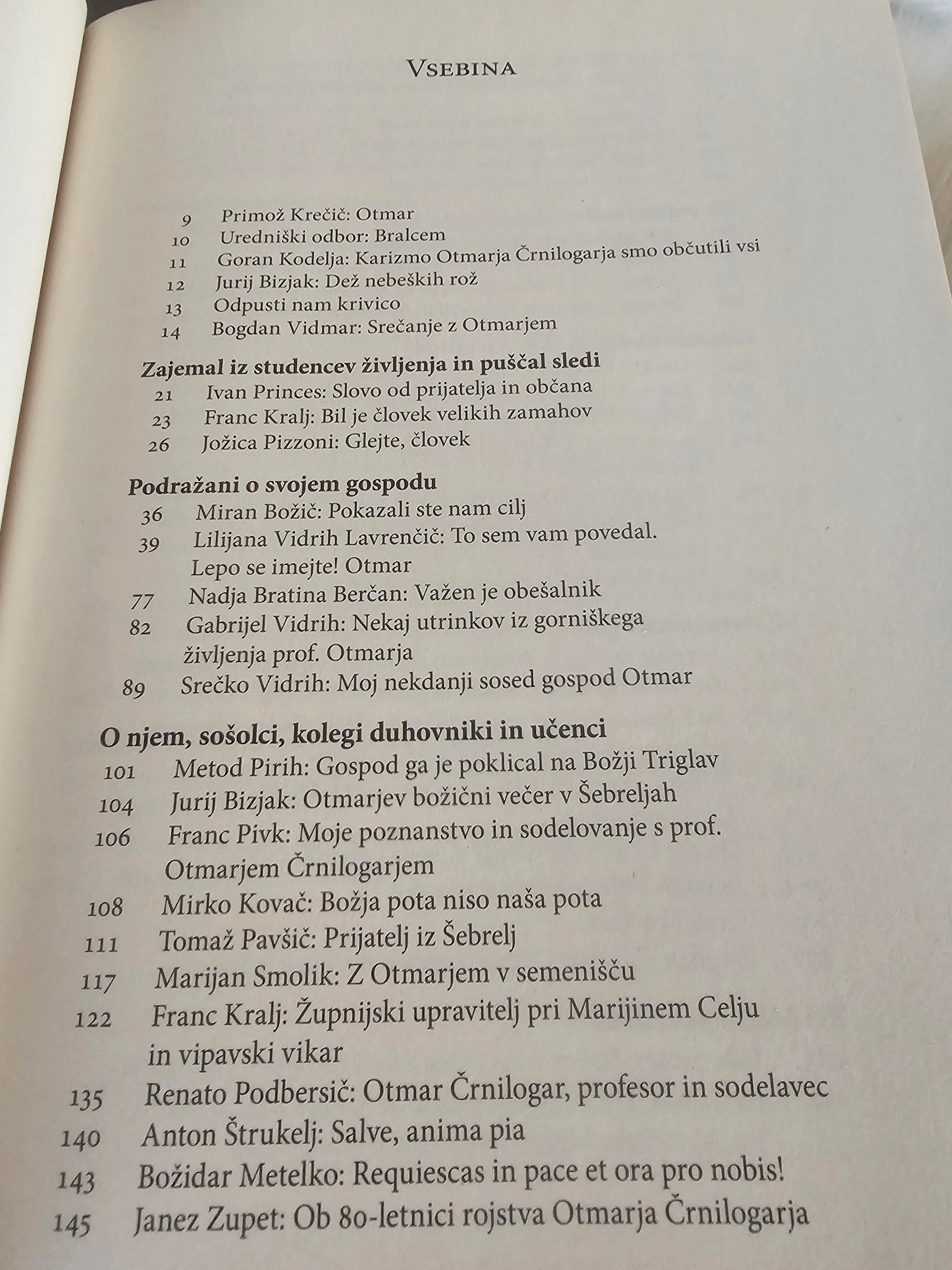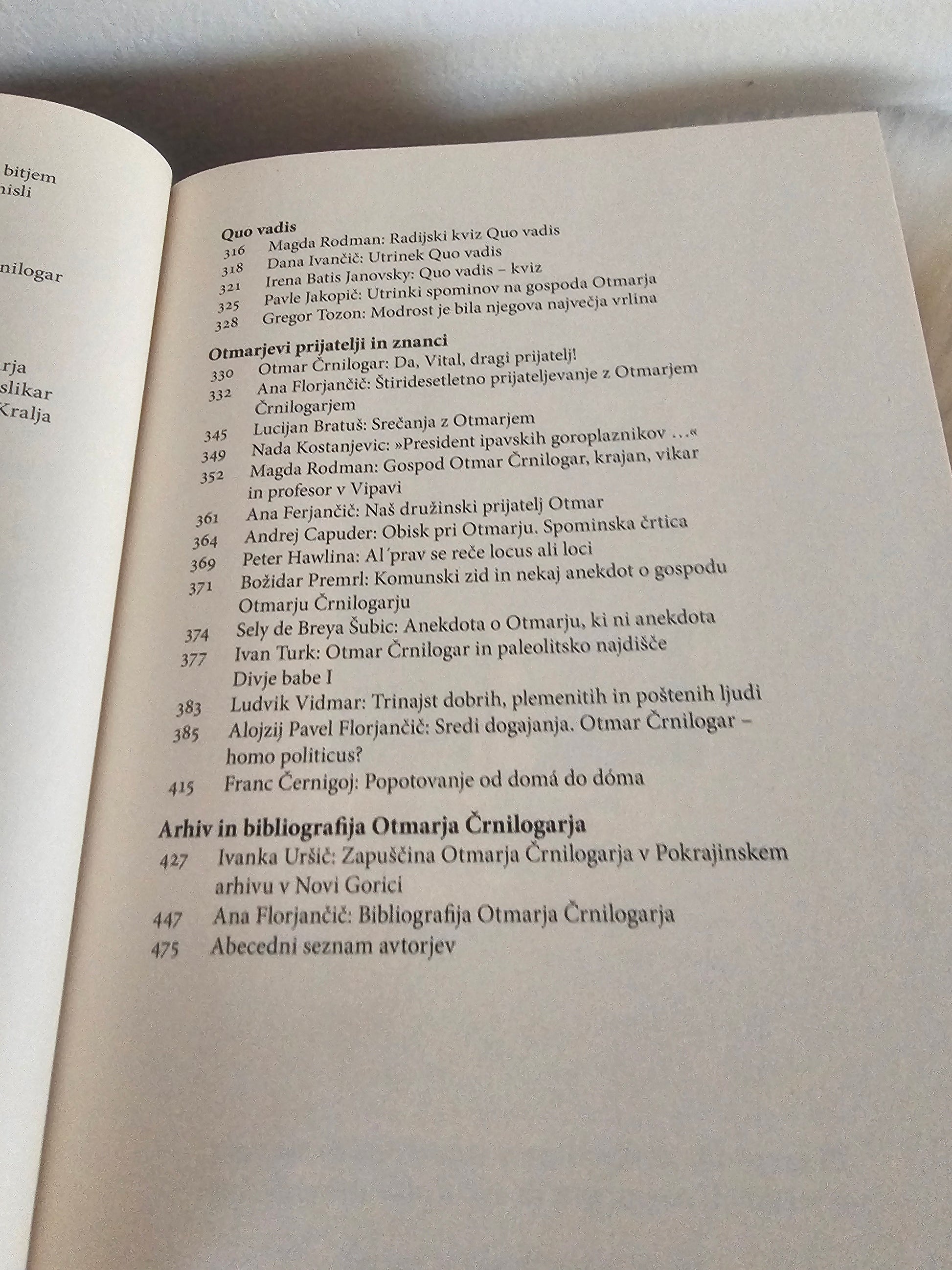 Otmar Črnilogar (1931–1999) je bil človek velikih zamahov, ki je zajemal iz studencev življenja in puščal sledi. Šolanje in intelektualno izpopolnjevanje ga je izostrilo v pronicljivega misleca in ognjevitega razpravljavca. Njegovo delo in njegov življenjski zgled sta se dotaknila mnogih ljudi, ki so svoja razmišljanja leta 2013 strnili v zbornik, ki sedaj v dopolnjeni, razširjeni in prenovljeni izdaji ponovno prihaja med slovenske bralce.