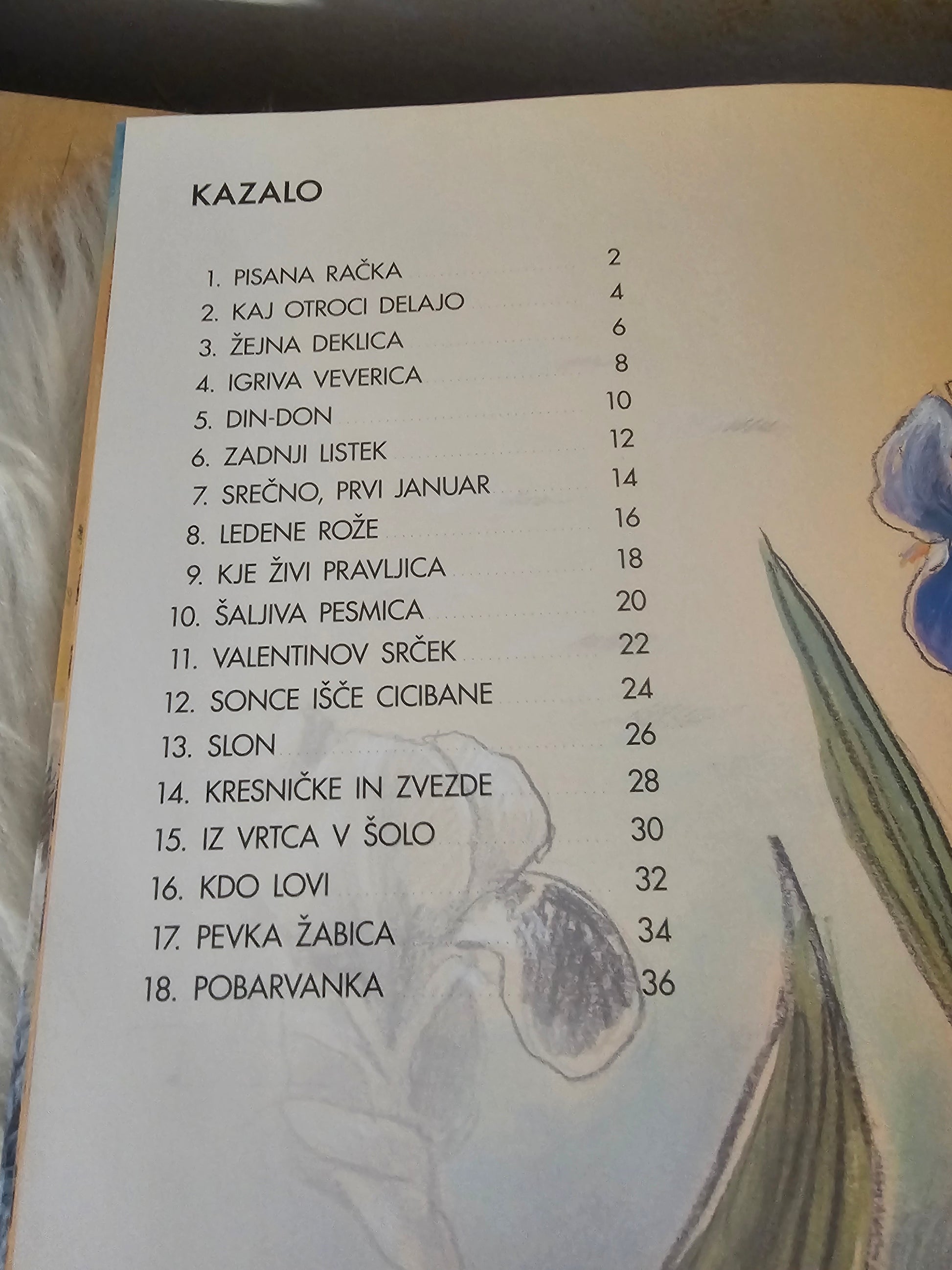 Združuje osemnajst pesmic, ki se vsebinsko zrcalijo v novih in bogatih ilustracijah Polone Lovšin.