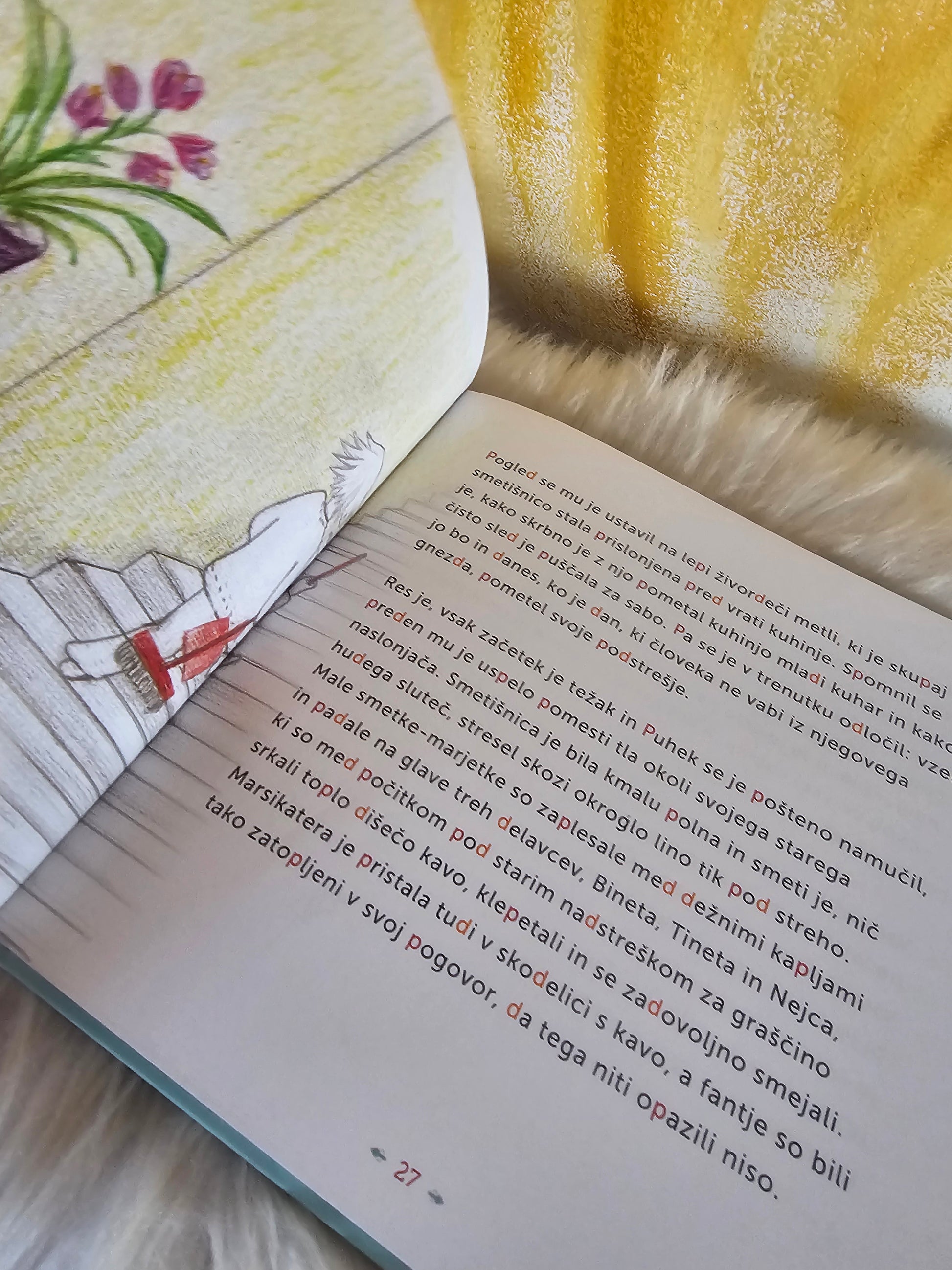 Oči mladega kuharja so se v hipu povečale, usta so se v hipu na široko razprla, tako, da je Puhek videl vrsto njegovih snežno belih zdravih zob in mali jeziček, ki se je gugal na koncu mehkega neba pred vstopom v grlo. Puhek pa se je še enkrat, še bolj nagajivo nasmejal......