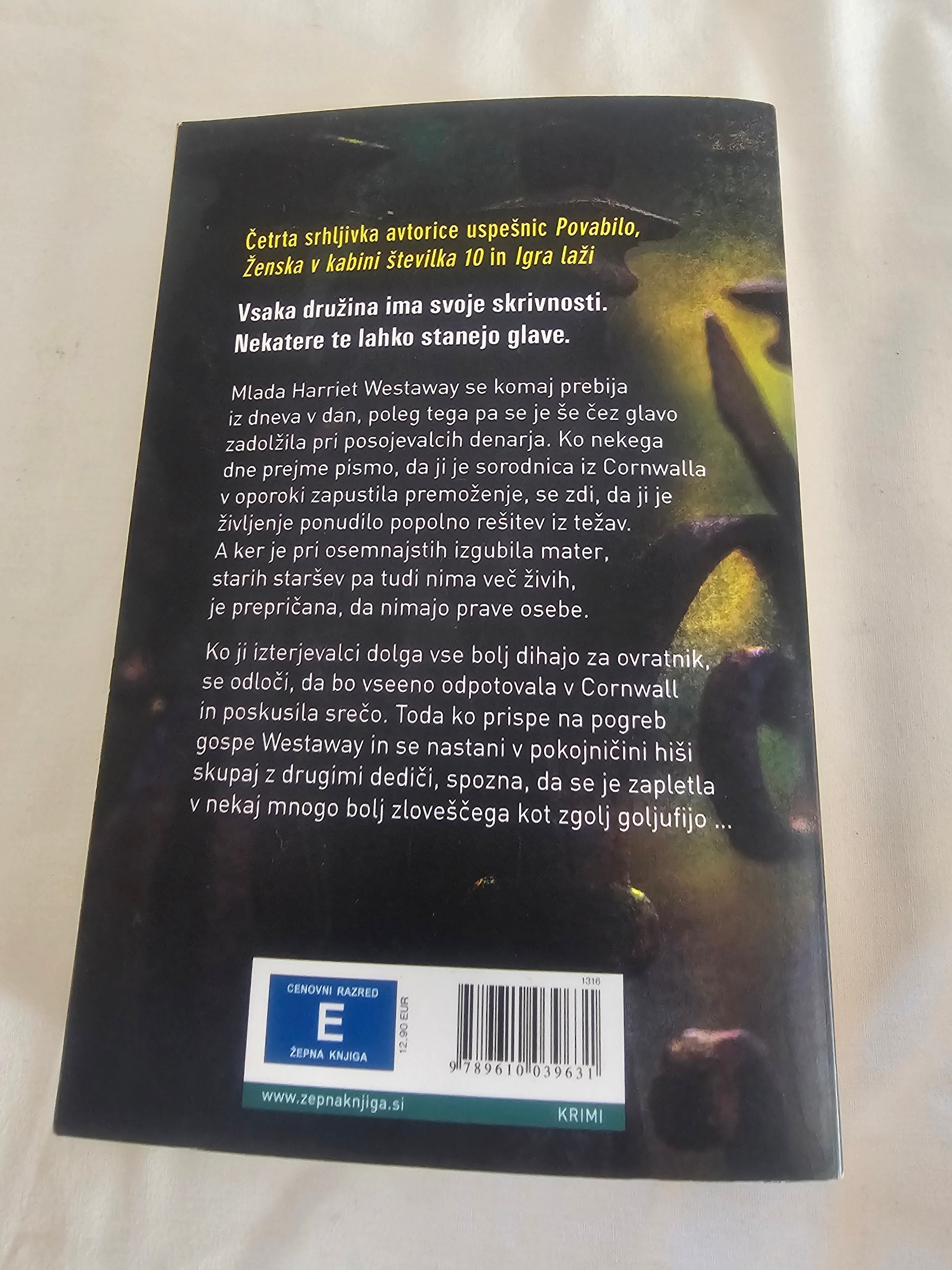 Mlada Harriet Westaway se komaj prebija iz dneva v dan, poleg tega pa se je še čez glavo zadolžila pri posojevalcih denarja. Ko nekega dne prejme pismo, da ji je sorodnica iz Cornwalla v oporoki zapustila premoženje, se zdi, da ji je življenje ponudilo popolno rešitev iz težav. A ker je pri osemnajstih izgubila mater, starih staršev pa tudi nima več živih, je prepričana, da nimajo prave osebe.