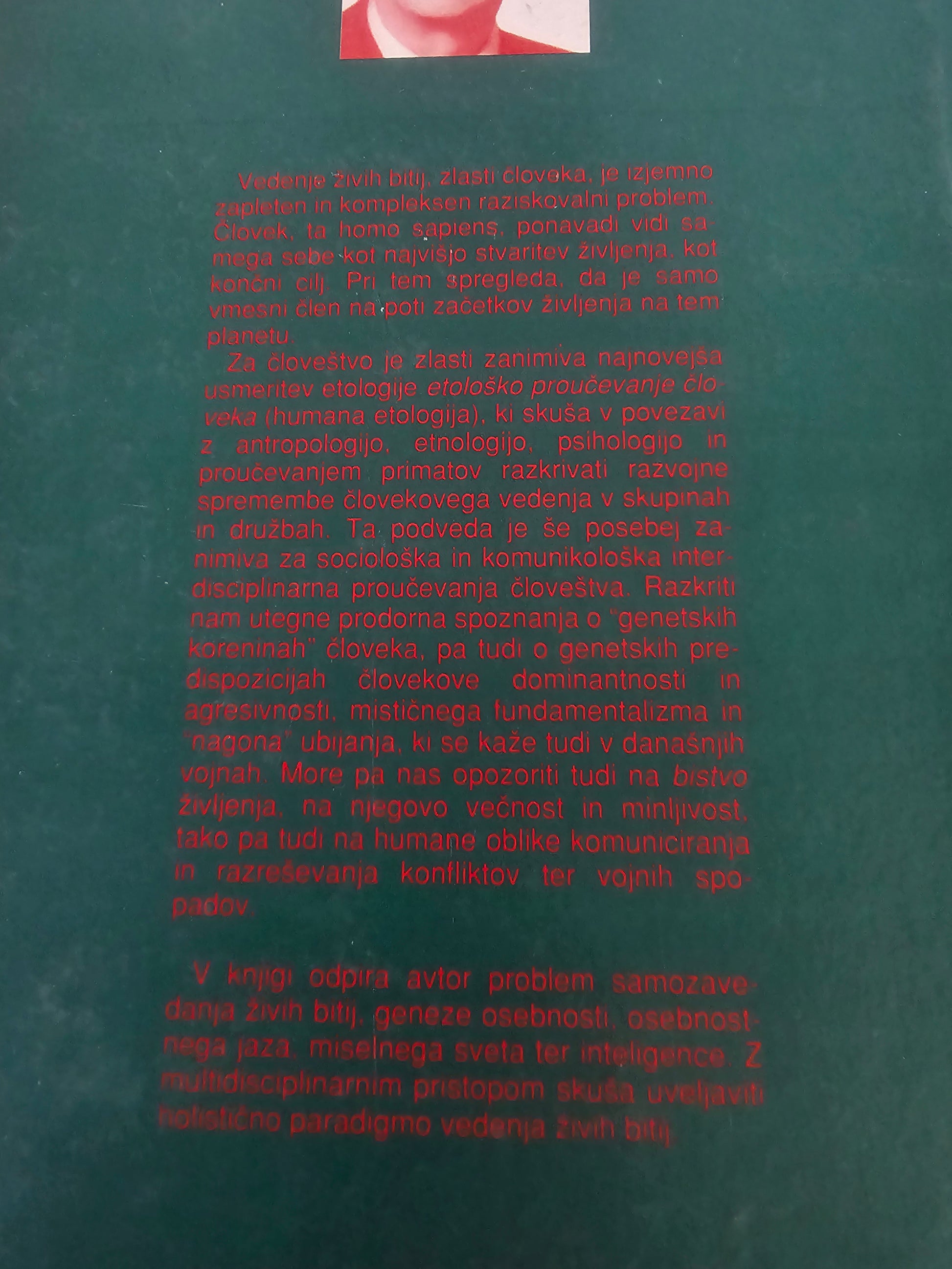 V knjigi avtor odpira problem samozavedanja živih bitij, geneze osebnosti, osebnostnega jaza, miselnega sveta in inteligence. Z multidisciplinarnim pristopom skuša uveljaviti holistično paradigmo vedenja živih bitij.