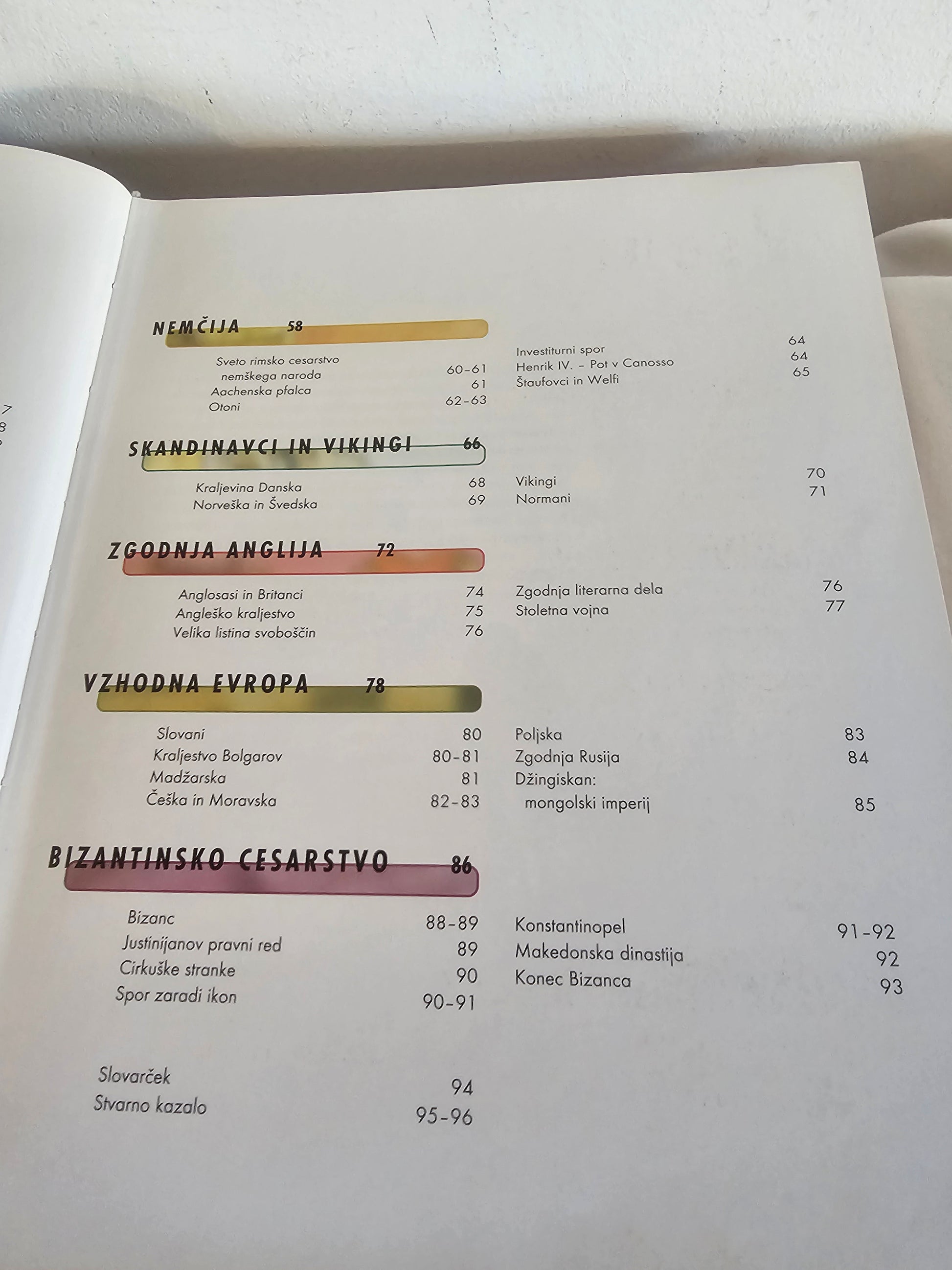Knjiga ponuja poglobljen vpogled v obdobje srednjega veka, osredotočajoč se na različne vidike življenja v tem času. Raziskuje vlogo vladarjev, delovanje viteškega reda in razvoj trgovske dejavnosti. Bralcu predstavi politične, socialne in gospodarske spremembe, ki so oblikovale srednjeveško družbo. Poleg zgodovinskih dejstev vključuje tudi zanimive anekdote in ilustracije, ki pomagajo razumeti kompleksnost tega obdobja. Namenjena je tako zgodovinskim navdušencem kot tudi tistim, ki želijo pridobiti osnovno razumevanje srednjega veka.