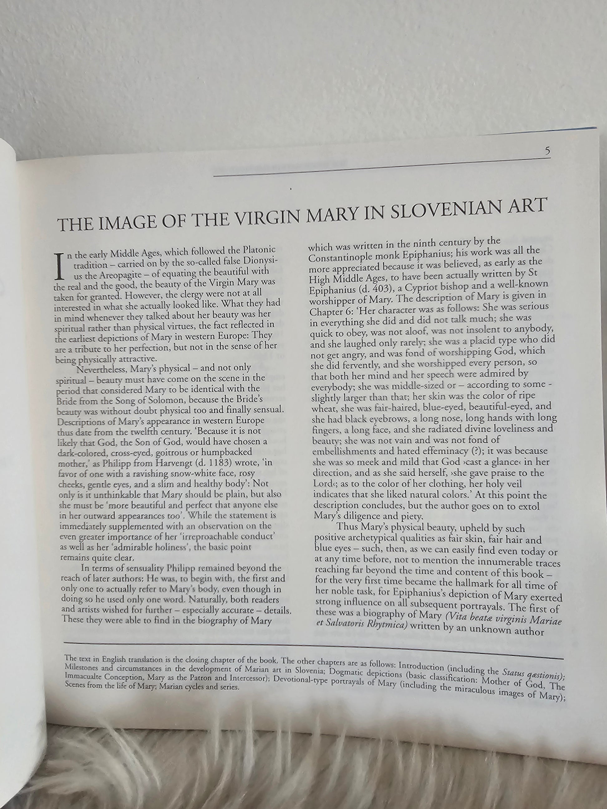 Knjiga raziskuje upodobitve Device Marije v slovenski umetnosti skozi stoletja. Analizira različne umetniške sloge in tehnike ter kulturni pomen teh del. Avtor preučuje, kako so slovenski umetniki skozi zgodovino interpretirali Marijino podobo in njen vpliv na versko ter kulturno dediščino. Knjiga vključuje tudi številne ilustracije, ki ponazarjajo raznolikost in bogastvo teh umetniških stvaritev.