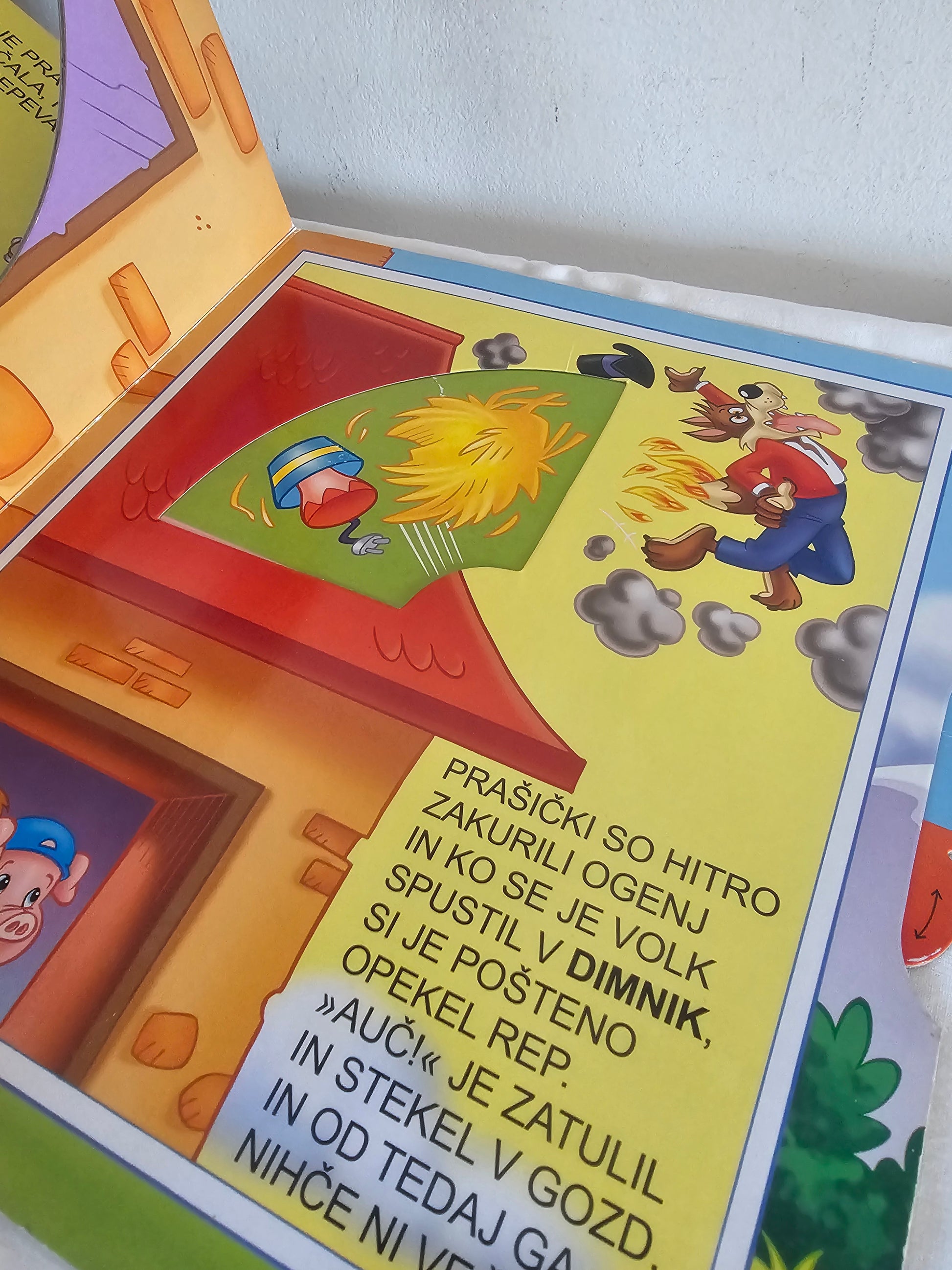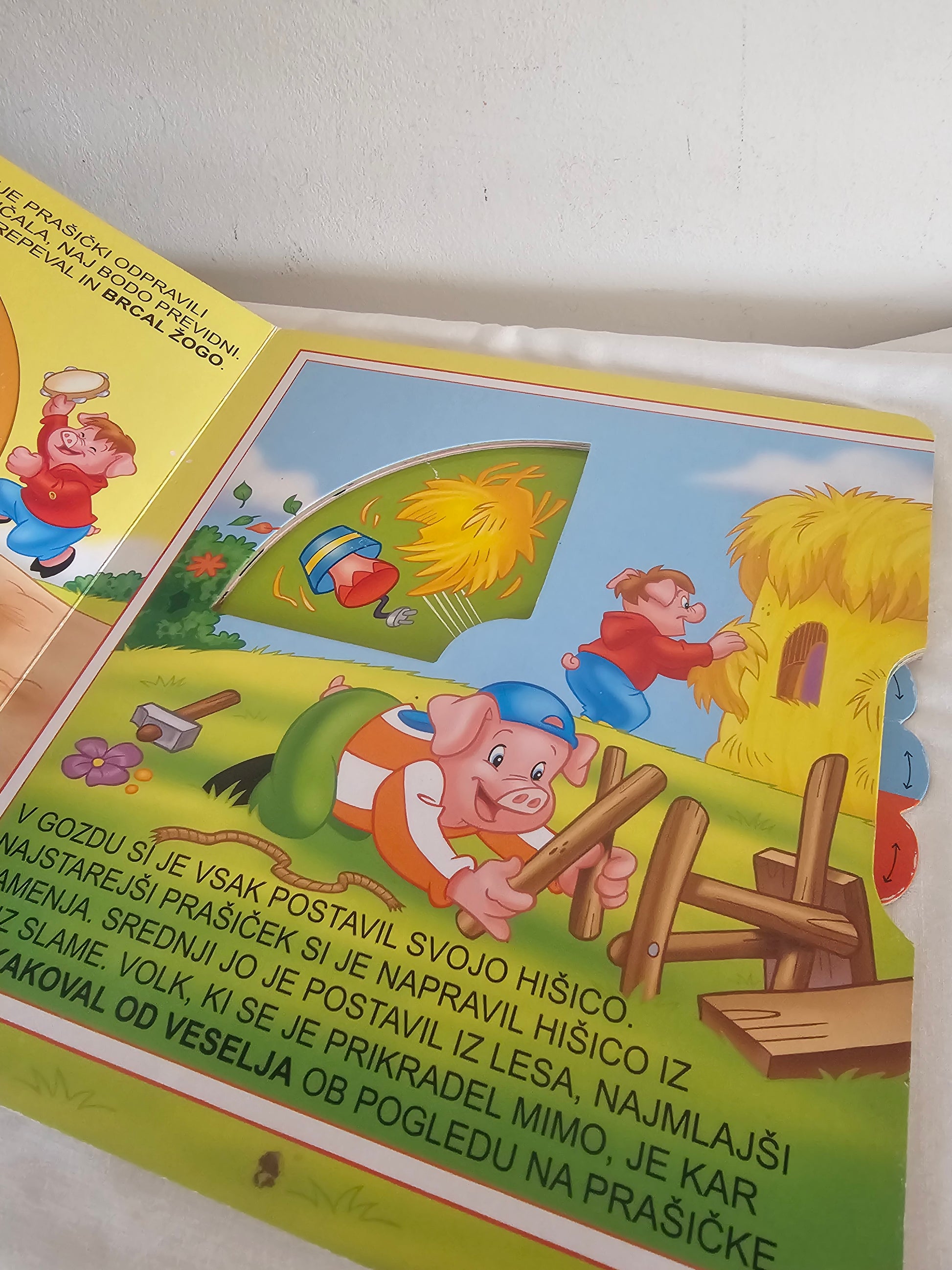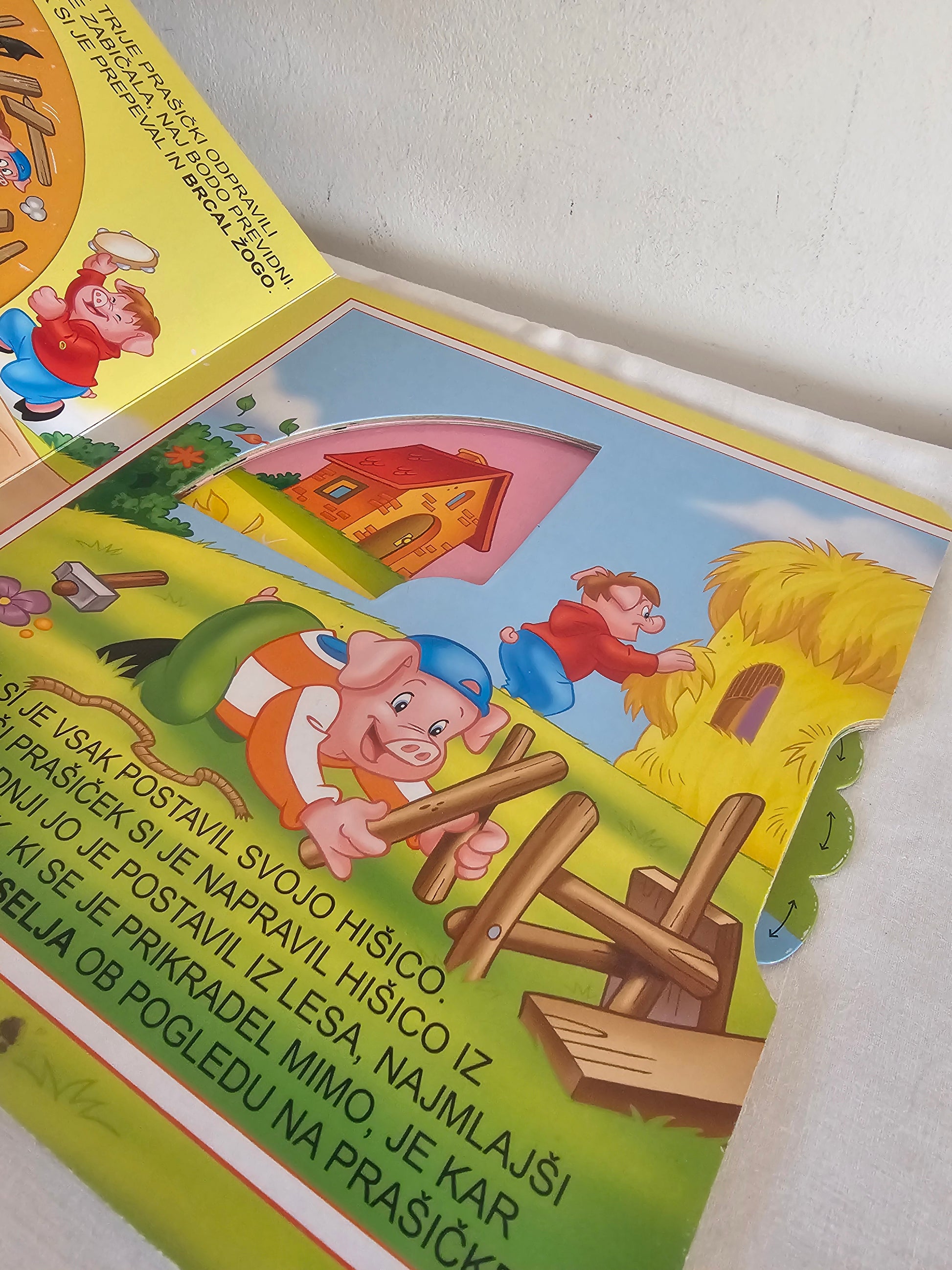 Trije prašički, zavrti krožec in poišči ilustracijo, ki ustreza besedilu, ter se zabavaj ob tej čudoviti zgodbi treh prašičkov.