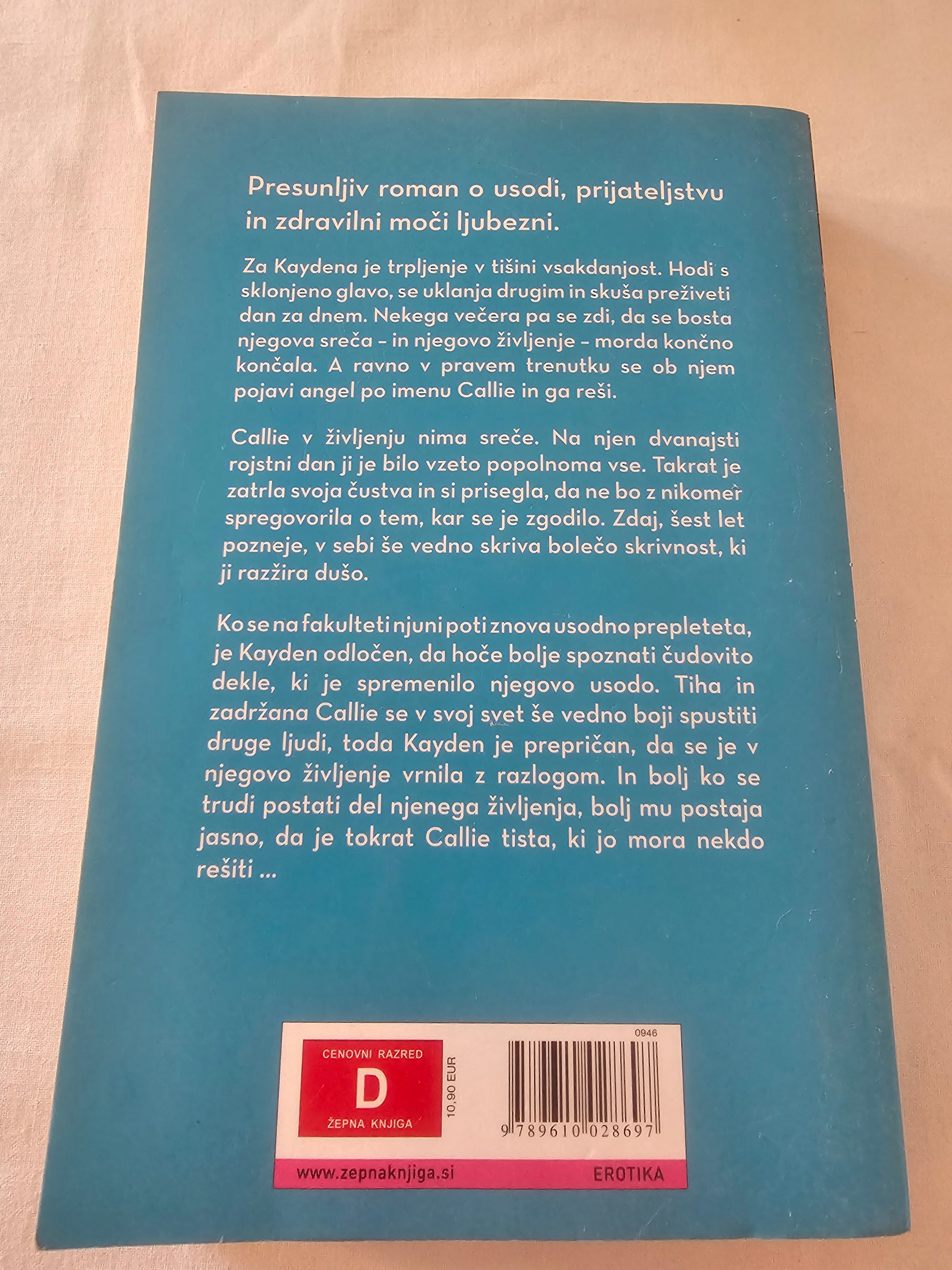 Kayden že od nekdaj trpi v tišini. To je njegov življenjski slog. Če dela to, kar mu je bilo naročeno, je vse v redu. Neko noč pa naredi usodno napako in prepričan je, da se bo njegovo življenje končalo. Dokler ga ne reši tiho dekle iz sosednje hiše. Callie.