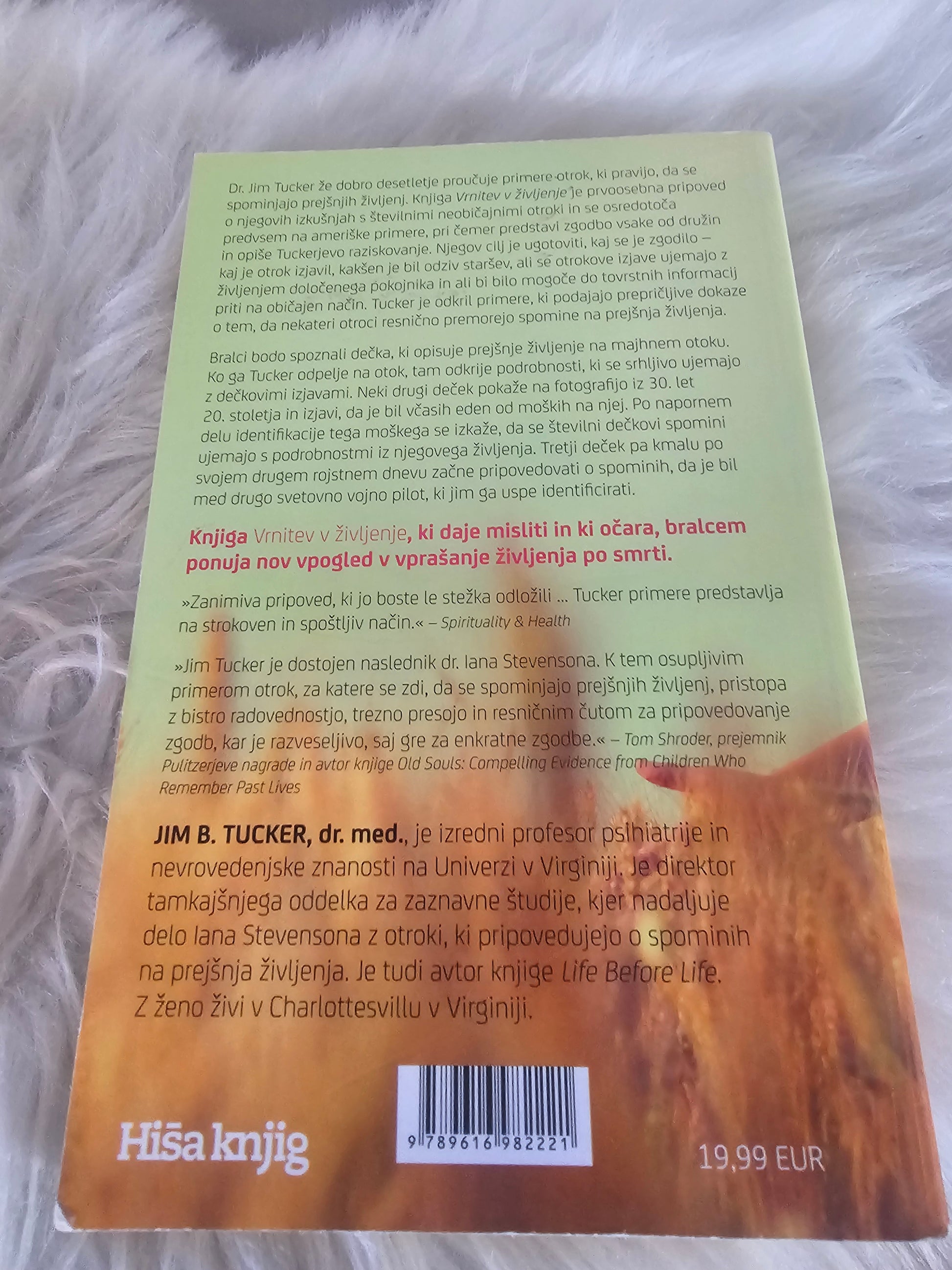 Dr. Jim Tucker že dobro desetletje proučuje nenavadne primere otrok, ki pravijo, da se spominjajo prejšnjih življenj. Knjiga Vrnitev v življenje je prvoosebna pripoved o njegovih izkušnjah s številnimi neobičajnimi otroki in se osredotoča predvsem na ameriške primere, pri čemer predstavi zgodbo vsake od družin in opiše Tuckerjevo raziskovanje.