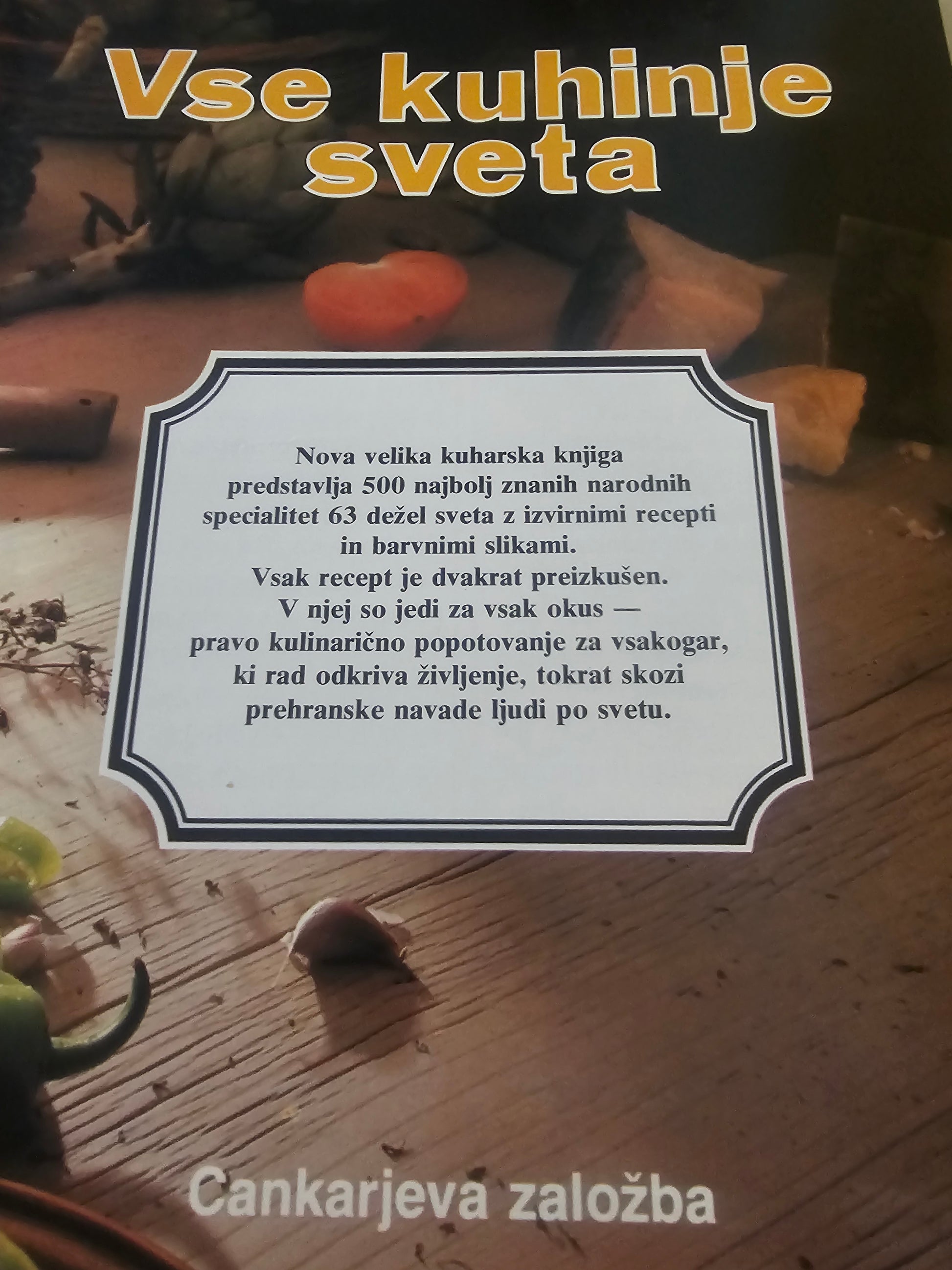 Barvna kuharska knjiga iz leta 1984 predstavlja 500 najbolj znanih narodnih specialitet iz 63 dežel sveta z izvirnimi recepti in slikami, ima 288 strani in je velik format.