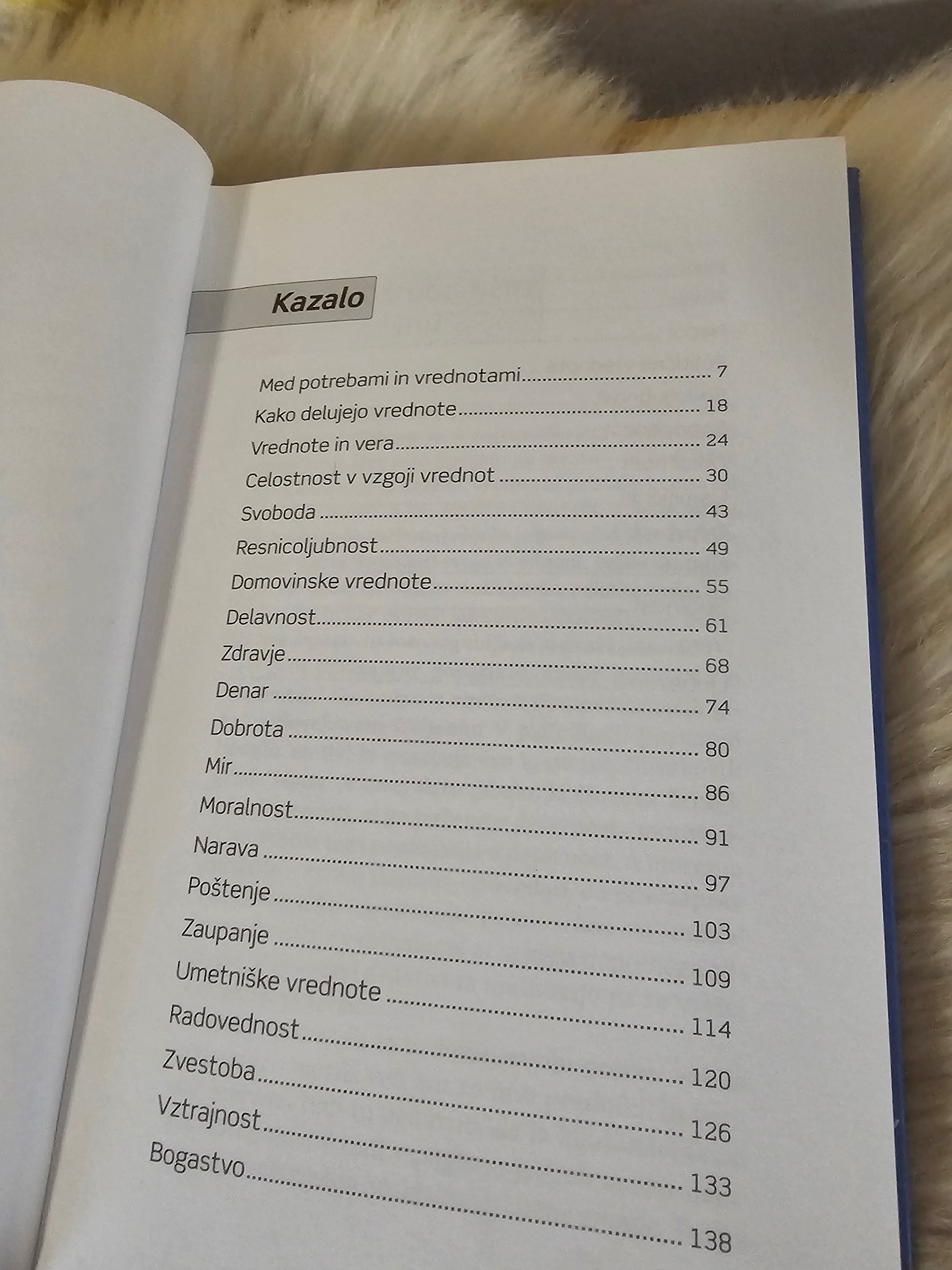 Avtor, slovenski psihoterapevt – smer gestalt terapija – je razvil izviren družinski model terapevtske pomoči otrokom, mladostnikom in družinam v stiski. Praktično ga izvaja v zasebnem zavodu v Čepovanu, je tudi priljubljen predavatelj in pisec. Njegovi knjigi Razvajenost – rak sodobne vzgoje (2002) in Stiska je lahko tudi izziv (1997) sta vedno aktualni. V pričujočem delu spregovori Žorž o vrednotah. V splošnem, uvodnem delu ugotavlja, da so predpostavke o današnji krizi vrednot napačne. Vrednote so večne, vrednote so vedno iste, spreminjajo se mogoče le glede na hierarhijo, ki pa je povezana s časom in različnim kulturnim prostorom. Kriza se pojavlja pri vzgoji; mnogi starši in drugi vzgojitelji ne znajo otroka pripeljati do tega, da bi znal na poti v odraslost ponotranjiti vrednote kot njegove in bi ga vodile pri nevarnih pasteh zadovoljevanja potreb. Te namreč postanejo problematične, kadar jih narekujejo zunanji dejavniki v obliki najrazličnejših ideologij in potrošniških ponudb – takrat se človek pri izbiri težko znajde brez lastnih vrednostnih meril...