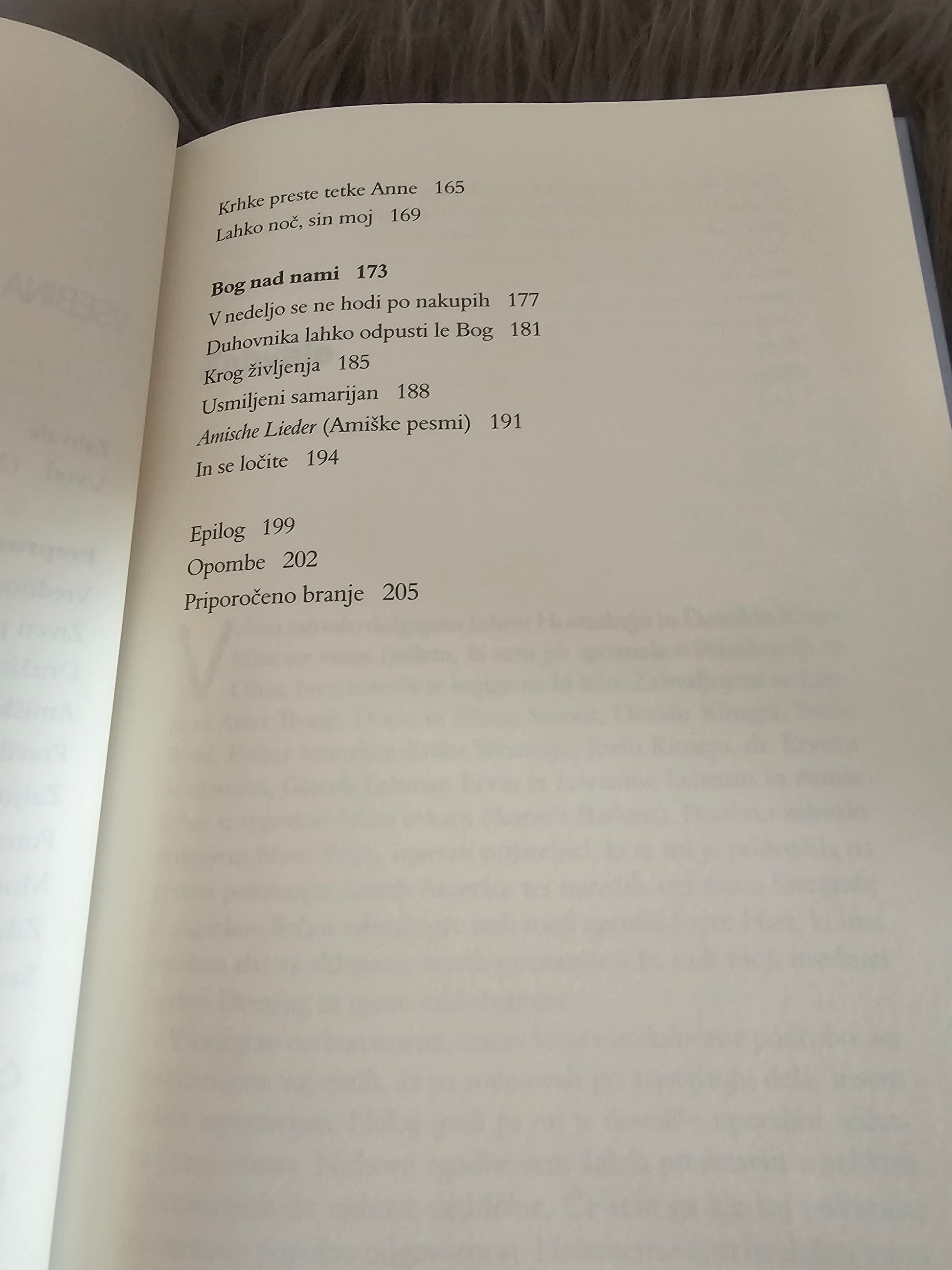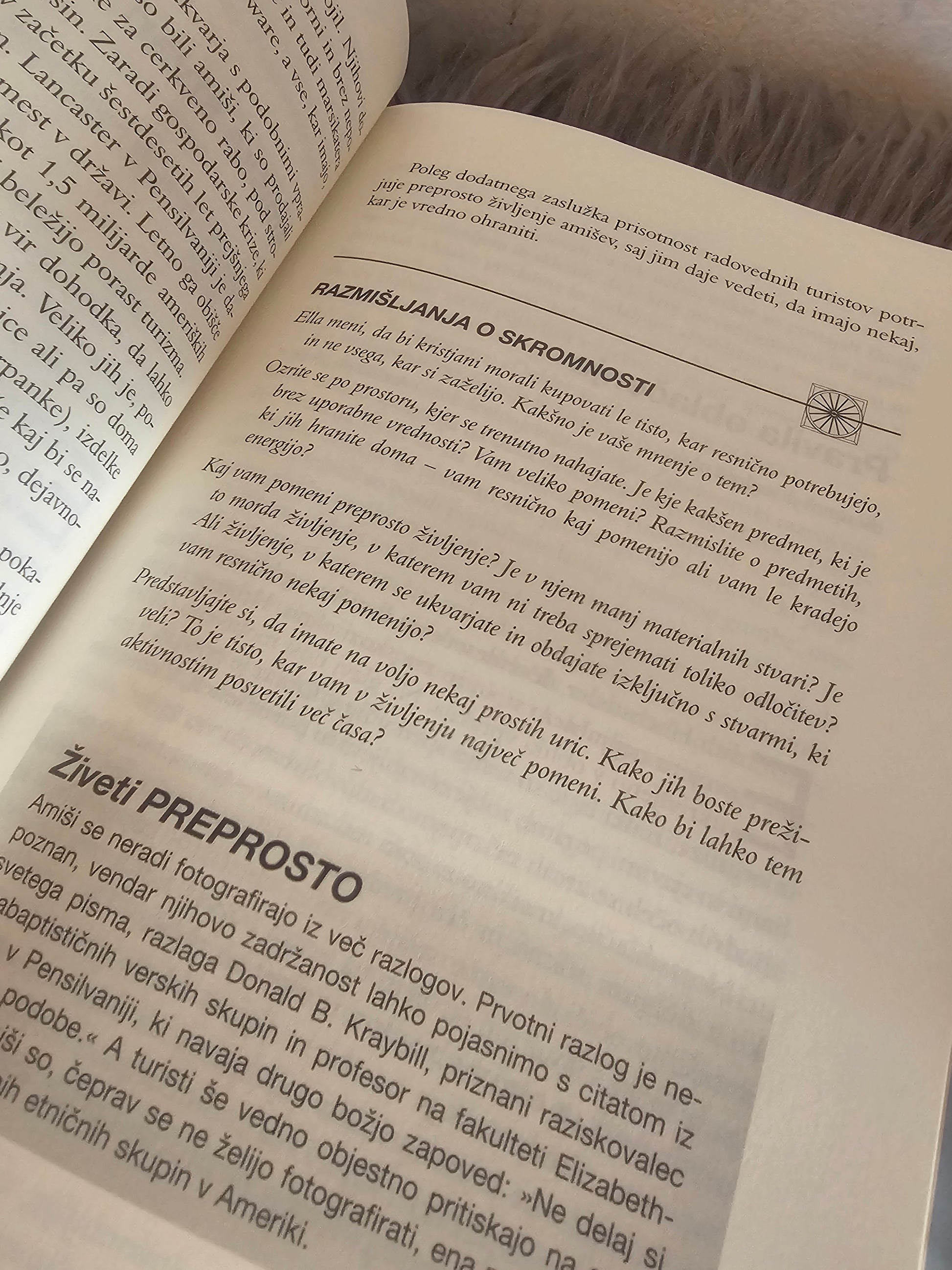 Avtorica nam ob resničnih zgodbah predstavi pet osrednjih tem iz življenja amišev; spregovori nam o njihovem pogledu na čas, skupnost, moč odpuščanja, ...